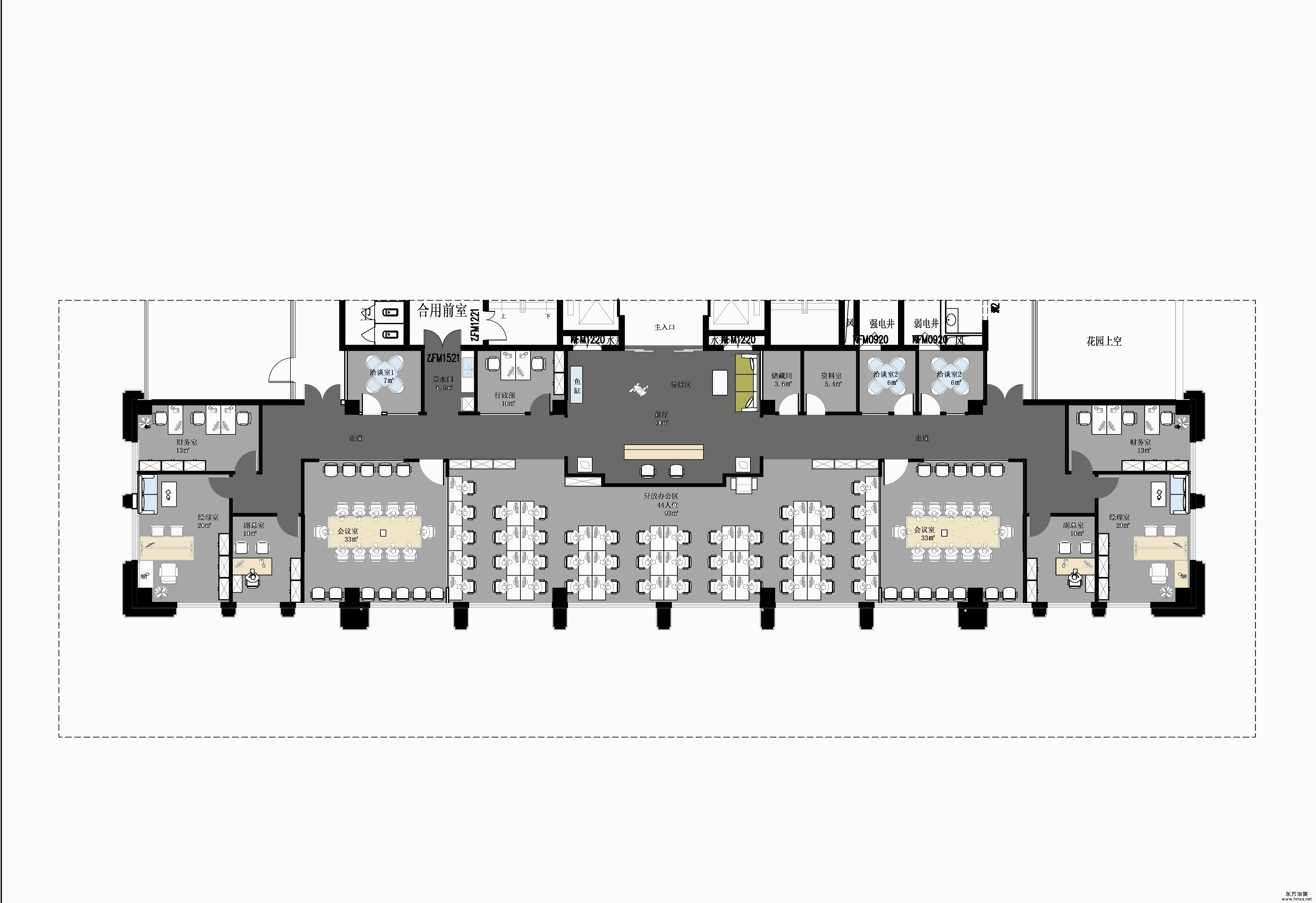 ▄設計需求: 我們的設計師在于甲方溝通裝修需求時,確定了甲方辦公空間的定位,設計師采用了現(xiàn)代風格,傳統(tǒng)與時尚的融合來打造簡約而不簡單的辦公空間。 甲方的需求的空間有前廳、會客區(qū)、大會議室、綜合辦公室、項目中心、投資中心、成本中心、財務室、小會議室、專用會議室、休息室、董事長辦公室、資料室、機房、衛(wèi)生間、原始露臺利用及茶水區(qū),根據(jù)空間效果進行搭配。 客戶要求在整個區(qū)域呈現(xiàn)一種高檔大氣的感覺,初次來到公司,就讓人感覺很高檔,但是很穩(wěn)重,不輕?。蛔屓水a生安全感和信任感,讓人感覺我們是走在時代前沿的公司,同時讓人感覺很舒適。